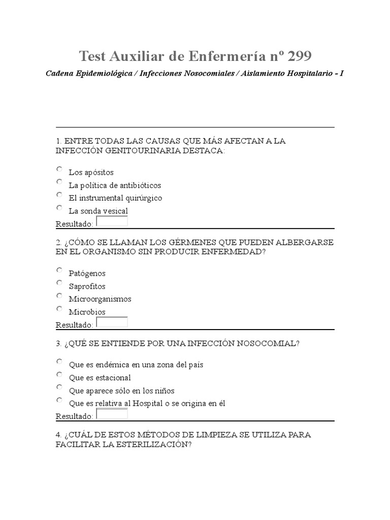 Aquí Test Auxiliar de Enfermería | Infección adquirida en el hospital Nuevo