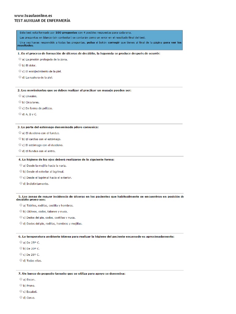 Nuevo Módulo de Técnicas Básicas en Enfermería: corrección de test general Último