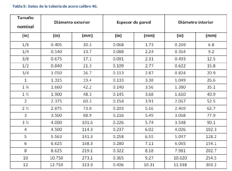 Dimensiones de TuberĆa de Acero Calibre 40 | PDF Nuevo