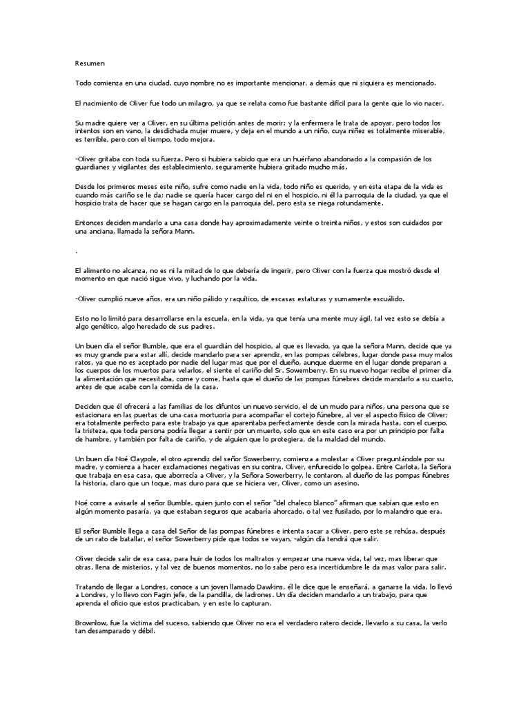 Asunto Resumen Del Libro Oliver Twist Charles Dickens - Leer un Libro viral