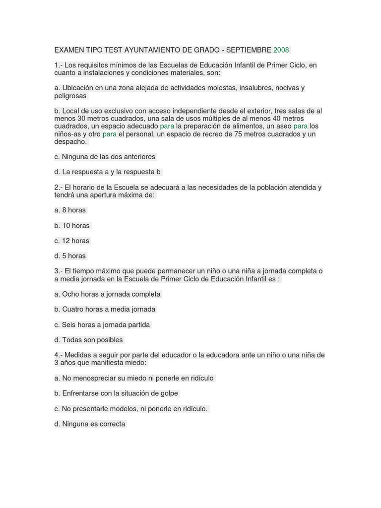 Último EXAMEN TIPO TEST AYUNTAMIENTO DE GRADO.pdf | Educación de la primera actualizado