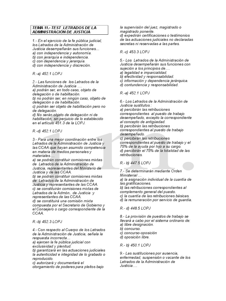 Aquí TEMA 11.- TEST LOS LETRADOS DE LA ADMINISTRACION DE JUSTICIA .- CON