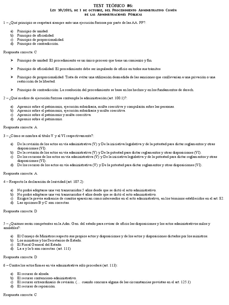 Artículos TEST TEORICO LEY 39-2015 #6.pdf | Regulación | Virtud Último